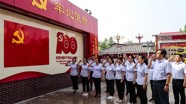 为纪念中国共产党建党100周年,继承和发扬党的光荣传统和优良作风,6月26日上午,三分公司机关第一、第二党支部组织机关20余名党员干部赴正定塔元庄,开展“发挥支部堡垒作用 永葆党员先进本色”主题党日活动。本次活动主要分重温入党誓词、参观塔元庄同福乡村振兴六位一体展厅两个部分。